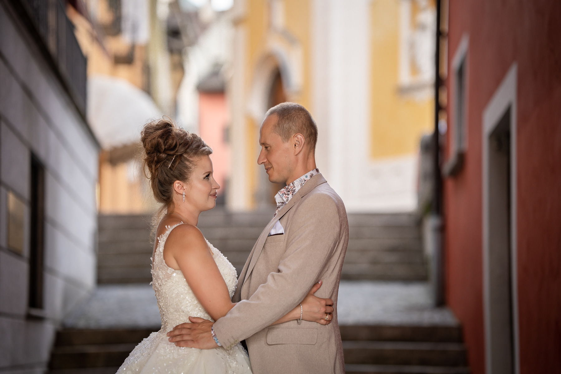 After the cruise on Lago Maggiore, we ate dinner in the lovely restaurant by the lake and continued our post wedding photo session, walking through the narrow streets of the old town and enjoying the charming architecture of Ascona.