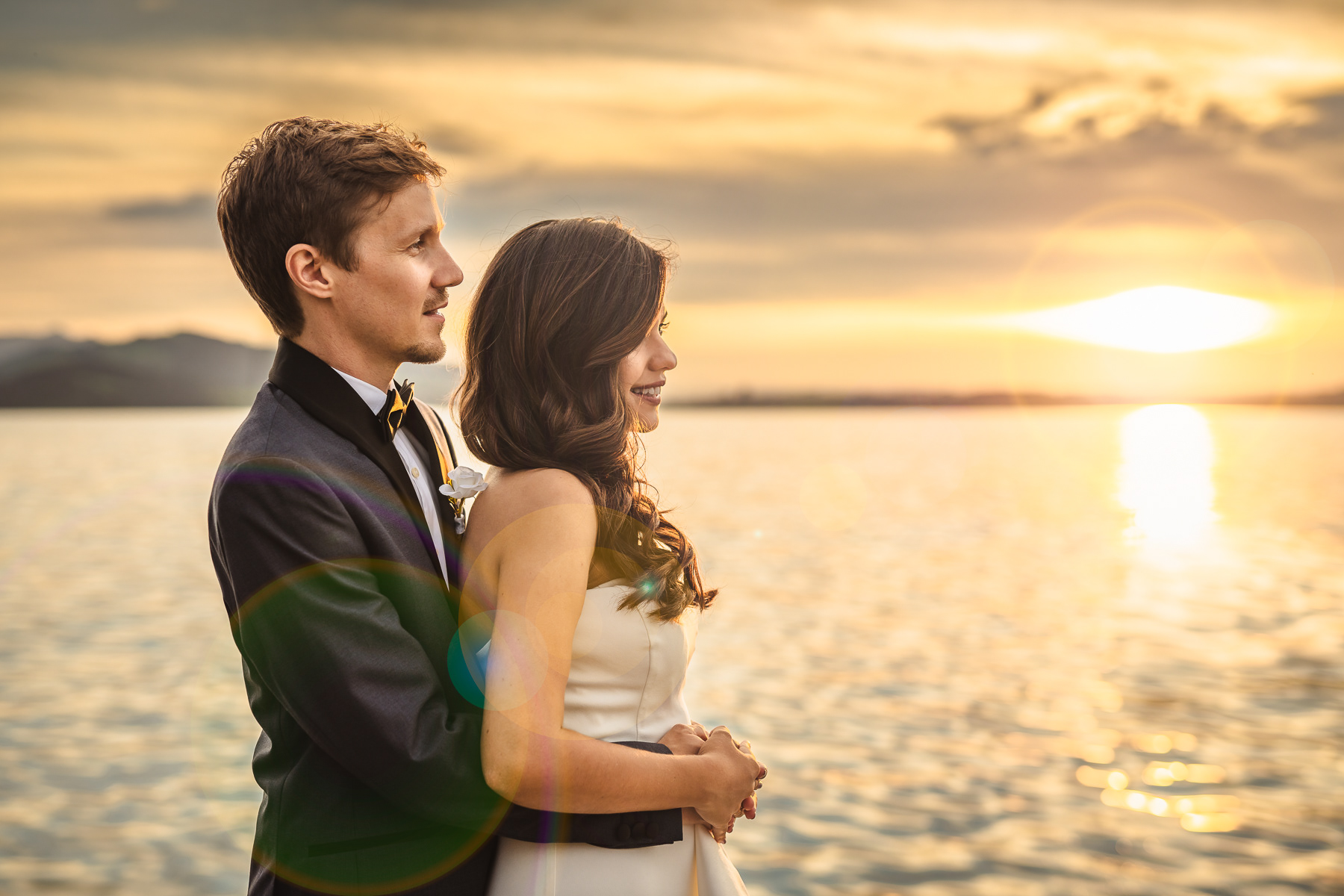 We started the couple's photosession with a few photos above Zug, where newlyweds looked straight out of the Disney fairytale.